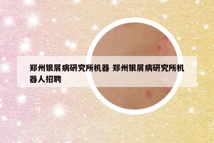 郑州银屑病研究所机器 郑州银屑病研究所机器人招聘