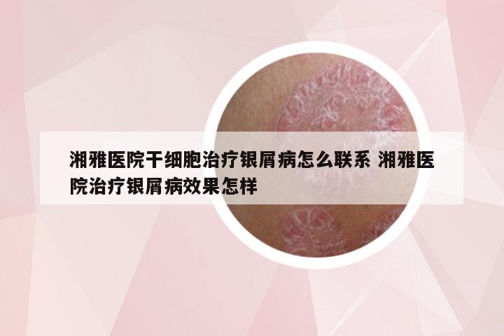湘雅医院干细胞治疗银屑病怎么联系 湘雅医院治疗银屑病效果怎样